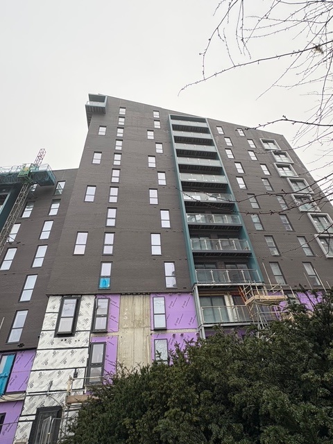X1 Aire Leeds has gone through a major fire remediation process over the last 12 months. All 230,000 bricks, the combustible insulation and poorly installed cavity barriers have been removed and replaced with new fire compliant insulation and cavity barrier products installed. As part of the cost assessment, the cost to refurbish and reuse the existing bricks was carefully considered, but the labour costs and potential knock on effect to the finished product prohibited this approach. Therefore, under careful QA management 230,000 new bricks are in the final process of being installed to match the existing façade.
